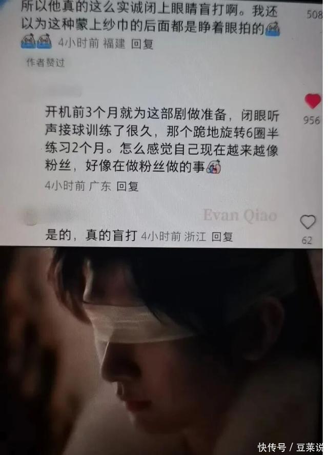 结果呢,成毅这段蒙眼打戏是真的盲打,为了能够呈现出最好的效果,成毅用每公里的发球机练习听声辩位,第一天被砸中次,45天后连续接个高速球,终于在经条NG后一镜到底!